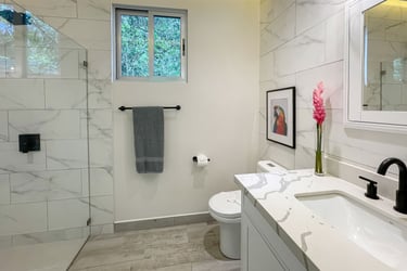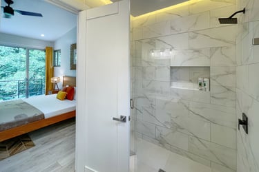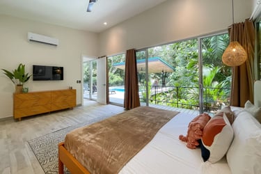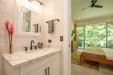 Surrounded by a private preserve and just 5 minutes to Manuel Antonio beach and restaurants, this brand-new home has it all. A pristine pool wrap around deck, outdoor cabana, chef's kitchen with brand new appliances, luxury mattresses, 2 bedrooms with private baths + a Bunk Bed Nook and A/C in the entire home. It is also the ONLY villa in Manuel Antonio with a private hiking trail, replete with sloths, monkeys, exotic birds, and rare orchids. Jungle Treehouse is jungle luxury at its finest.