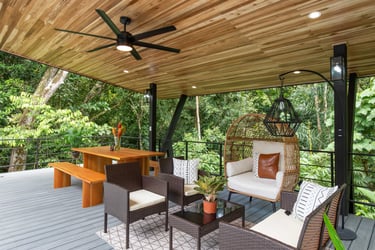 Large Outdoor Covered Rancho, Private Pool, and wrap around deck with jungle canopy views, with regular visits from all the jungle creatures, like Monkeys, Macaws, Toucans, Iguanas, and more!