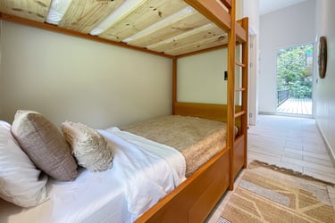 2 Luxuriously appointed bedrooms + a Bunk Nook for 6 people: 1) King Master with En Suite Bath and Shower, 2) King with en suite Walk in Shower, and 3) Bunk Beds attached to main living space in Bunk Nook. King Bedroom #1 has Pool Access from slider.