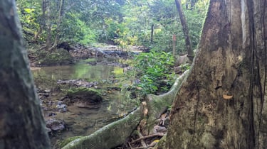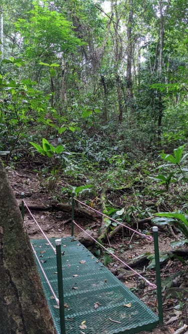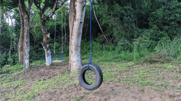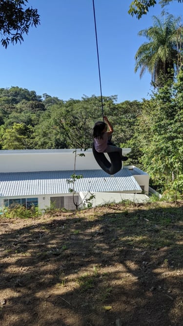 Our home has a dedicated, private nature preserve, with 2x walking loops for 1 KM of nature viewing, literally “right next door.” We also border the Gaia’s Macaw Preserve and Nature Sanctuary, so birds and animals are a-plenty. Above our pool, we have 2 tire swings and a bench swing, so the whole family can play close to home, and a 10 minute walk from our home is an adventurous creek-side trail, for the explorers.